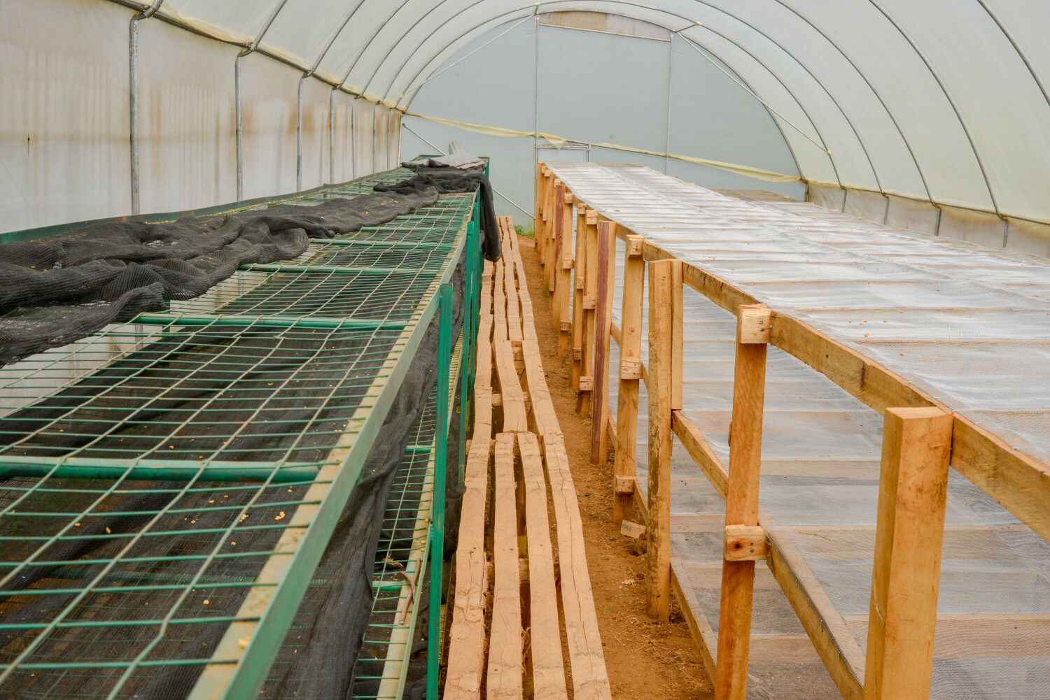 The washed beans are spread on drying tables where they are carefully dried under controlled conditions.